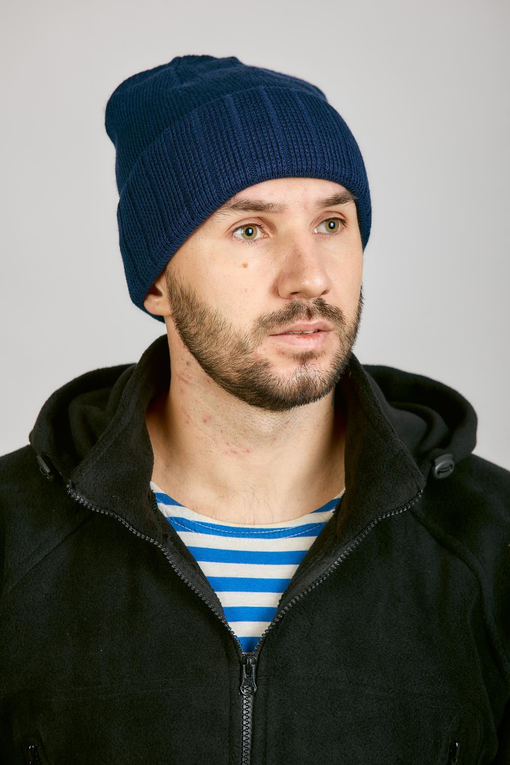 Шапка с отворотом 3-х нитка, синий - интернет магазин Полигон