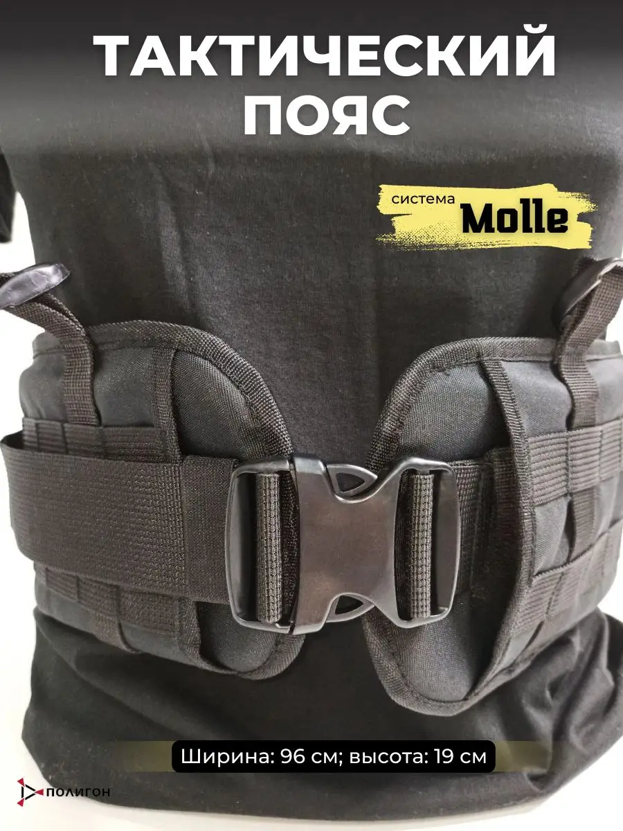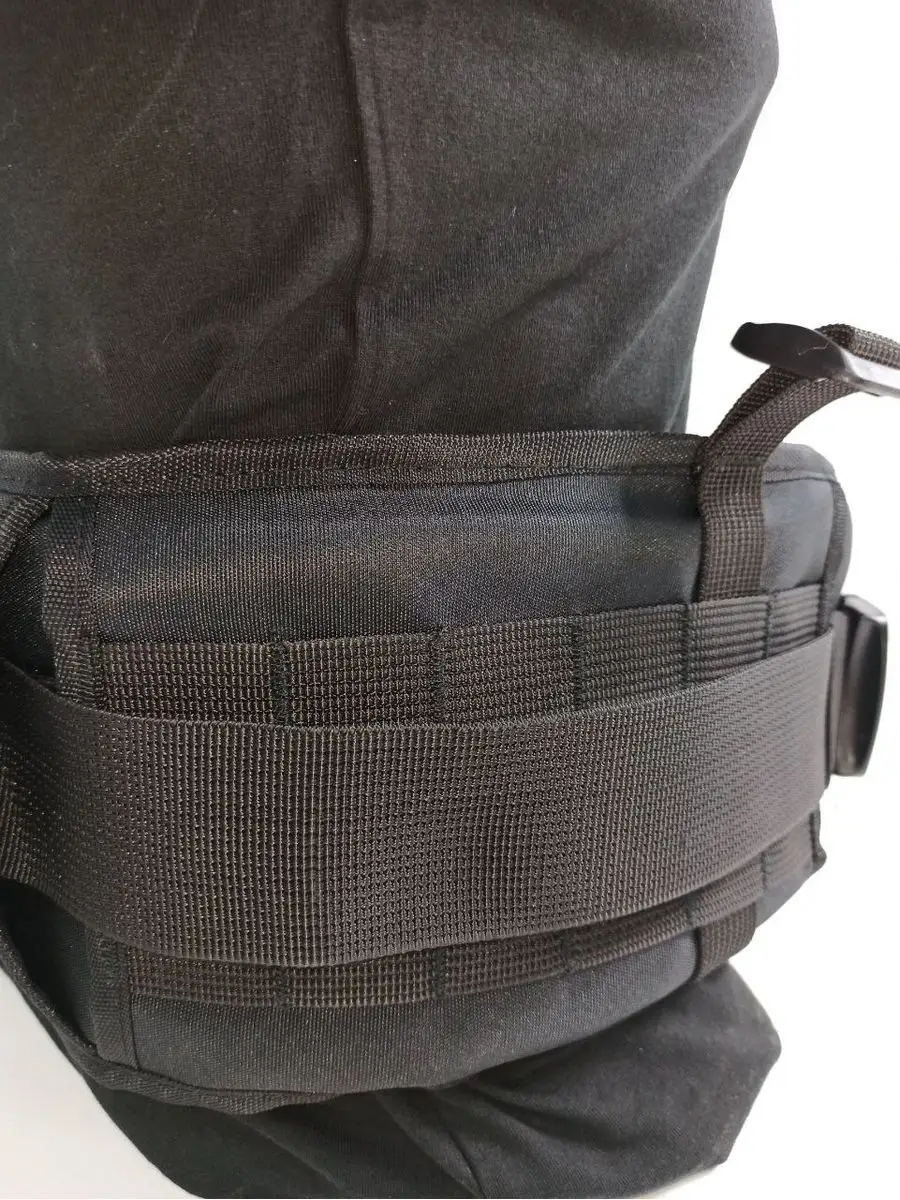 Широкий тактический пояс — предназначен для крепления различных подсумков на молли крепежах. Подходит для крепления сбруи. Есть крепёжные стропы для фиксации рюкзака. С внутренней стороны нашита трёхслойная сетка для лучшей вентиляции