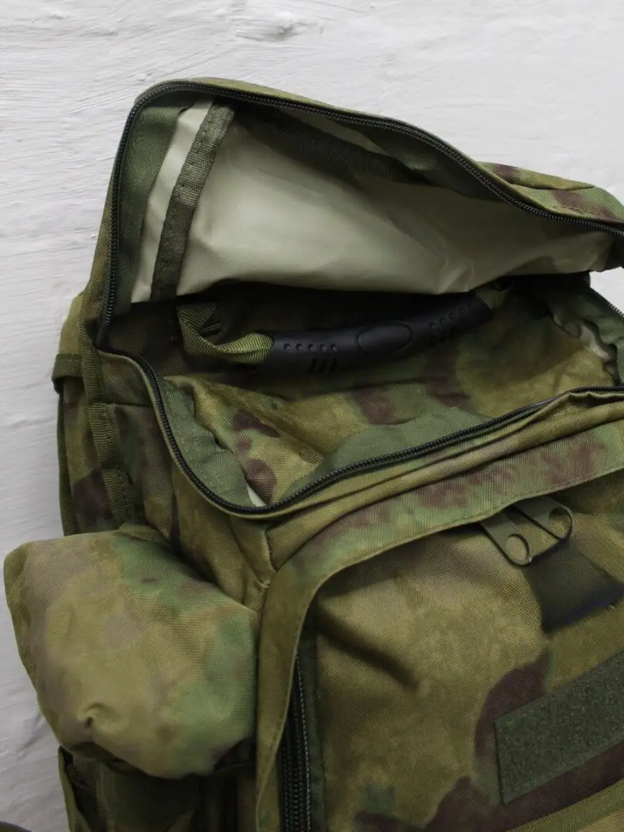 Рюкзак охотник с чехлом для ружья 75 л. Компактный, удобный и качественно сшитый рюкзак подходит охотникам, спортсменам и страйкболистам. Общий объем 75 л. Объем основного отделения 50л. Длина чехла для оружия 92 см. На фронтальной стороне 6 рядов строп моли по 4 ячейки в каждом ряду, для дополнительных подсумков. Две панели велкро для знаков отличия. Снизу застежка фастекс для фиксации оружейного чехла. По бокам рюкзака регулируемые боковые стяжки, 4 ряда строп моли по 3 ячейки в каждом ряду. Так же по боковые объемные карманы с клапаном на липучке сверху, и карман на резинке снизу. На спине рюкзака охотник стропы с пряжками в области плеч для крепления малого снаряжения и 2 крепежа для снаряжений с карабинами.  Широкие плечевые несъемные лямки анатомического силуэта распределяют вес рюкзака. Спина, лямки и пояс оснащены эргономичными вставками. Пояс фиксируется на застежку фастекс, имеет 2 ряда строп моли. Внутреннее отделение с фронтальной стороны фиксируется по всему периметру молнией. Внутри отделения  6 рядов строп моли по 4 ячейки в каждом ряду. Карман в верхнем клапане также фиксируется молнией, внутри расположена пластиковая ручка. Ручку можно убрать (спрятать). Сам чехол для оружия закрывается на клапан липучку. Также внутри предусмотрено отдельное отделение под пистолет. Рюкзак представлен в цвете Олива и Мох. Комбинированный рюкзак с чехлом для оружия – это универсальное решение для всех, чей активный отдых связан с оружием.