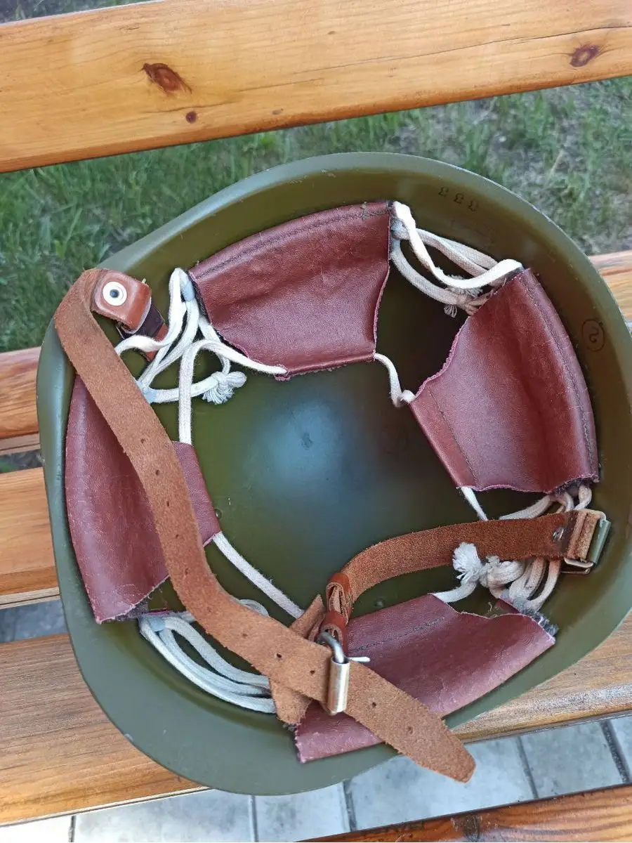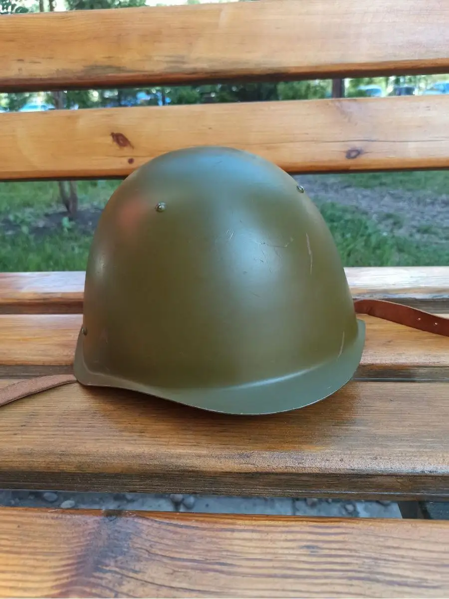 Каска стальная СШ-68 (стальной шлем образца 1968 года). Отличается от предшествовавшей каски СШ-60 большей прочностью, большим наклоном передней (лобовой) стенки купола и укороченными бортиками, отогнутыми наружу. Окрашен шлем в темно-зелёный цвет. Масса шлема — 1,3кг. СШ-68 обеспечивает защиту от небаллистических ударов (холодным оружием, мачете и др.), а также стальных осколков массой 1,0 грамм на скорости до 250 м/с, не предназначен для защиты от пуль. Ремешок кожаный с подбородником, чтобы металлическая пряжка не примерзала к подбородку зимой. Подшлемник состоит из 4 "лепестков" под ним грубый шинельный солдатский войлок в качестве подушки, соединенных (стягиваются) между собой хлопчатобумажным шнурком. Противоосколочный стальной шлем СШ-68 использовался вооруженными силами Советского Союза и его союзниками по Варшавскому договору, а также другими войсками. Есть серийный номер. В настоящее время данные варианты защиты не сняты с вооружения и в большом количестве хранятся на российских военных складах. Каска красноармейская подойдет для любого военного праздника или театрализованной постановки, участия в патриотической военной реконструкции.
