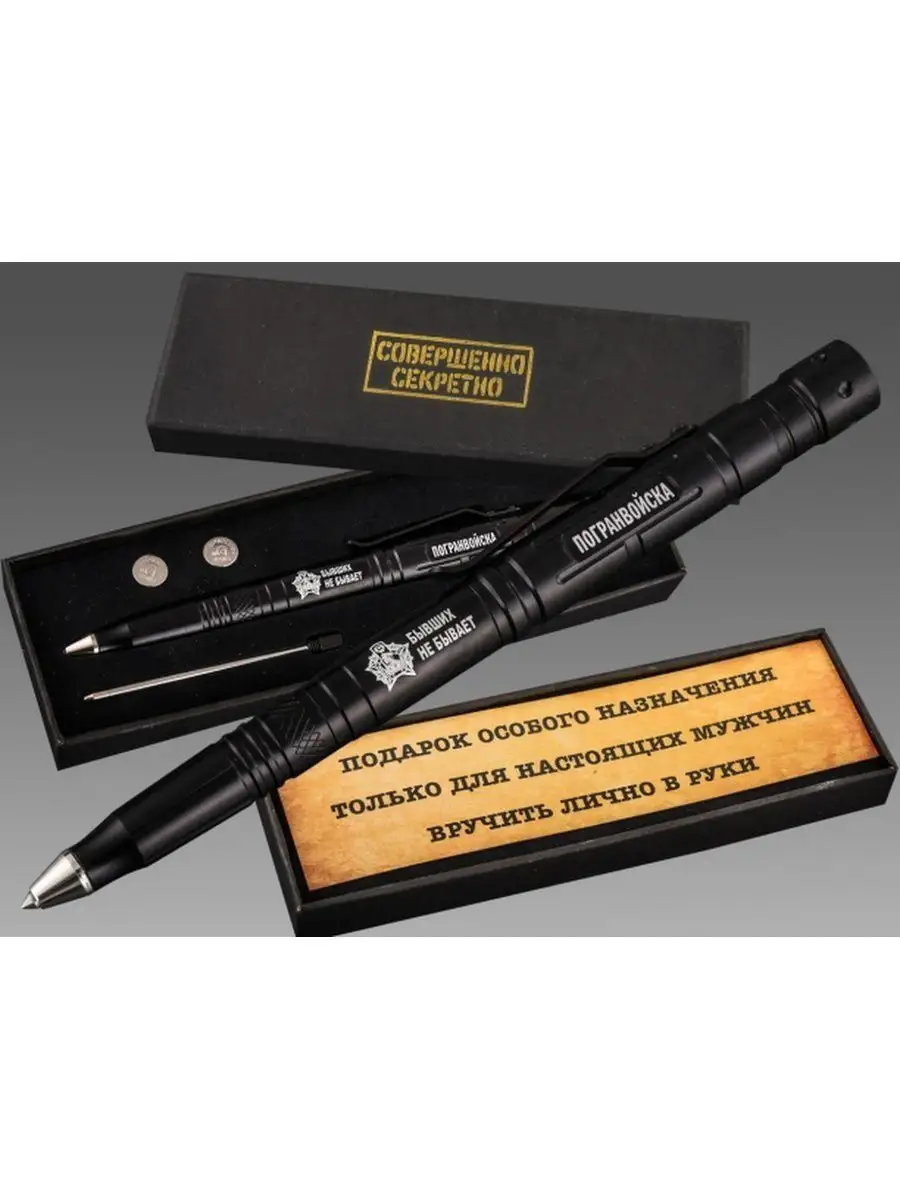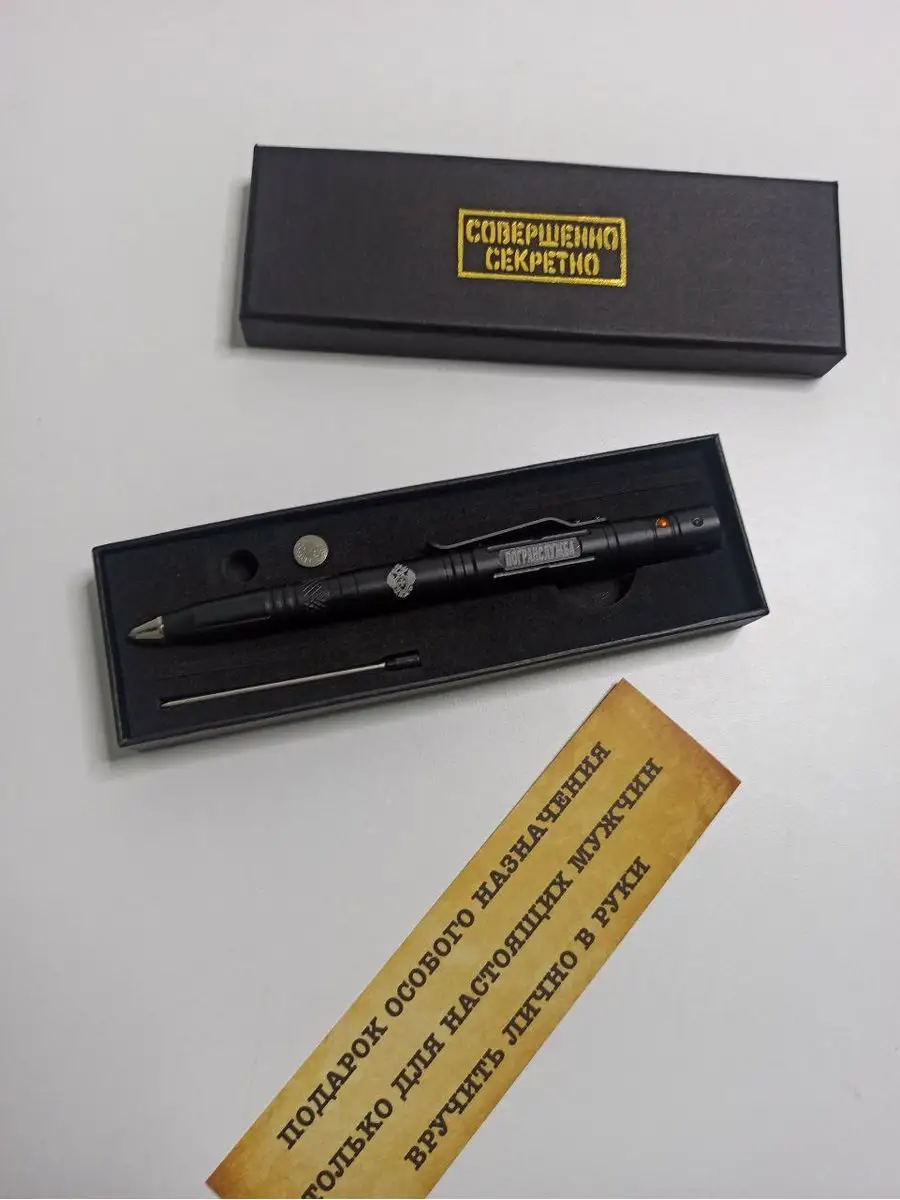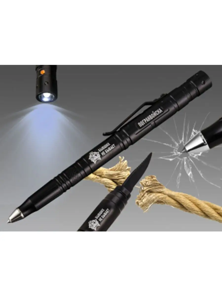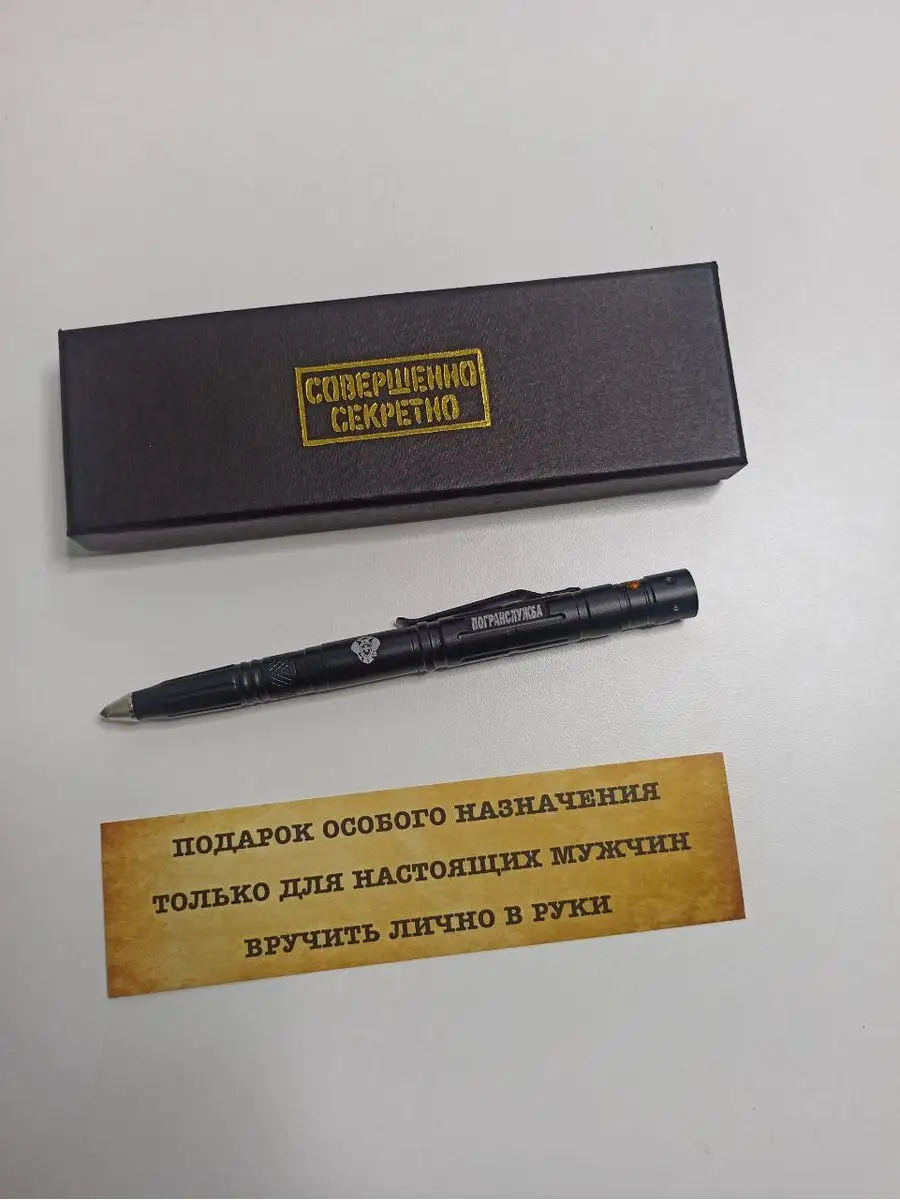 Ручка тактическая металлическая ПОГРАНВОЙСКА в черном матовом цвете. Многофункциональная тактическая ручка в оформлении ПВ. Мужской дизайн для любителей стильных и практичных аксессуаров. Одна из самых достойных моделей: подходит для гражданского и военного использования. Удобно лежит в руке, не привлекает лишнего внимания, занимает минимум места в кармане брюк, рубашки или пиджака. Данную ручку можно использовать наряду с боевым снаряжением для заполнения карточек огня или записей заметок либо носить в офицерском или сержантском планшете. Благодаря прочному металлическому корпусу она не сломается во время активных действий. Так же эту ручку можно просто подарить на день Пограничника 28 мая. Ручка мультитул шариковая незаменима для мужчины любой профессии, за счет своей многофункциональности. Есть фонарик в торце, питается от 3 батареек. С другой стороны стеклобой. Зажим для ношения на кармане. Внутри ножик 2,5см. Изготовлена из твердой стали повышенной прочности. Оснащена надежной клипсой для удобного ношения. Ручка станет лучшим подарочным набором для мужчин любого возраста. Ни один мужчина не равнодушен к такому девайсу, как тактическая ручка. Ручка подойдет как для любителей активного отдыха, так и в целях самообороны.